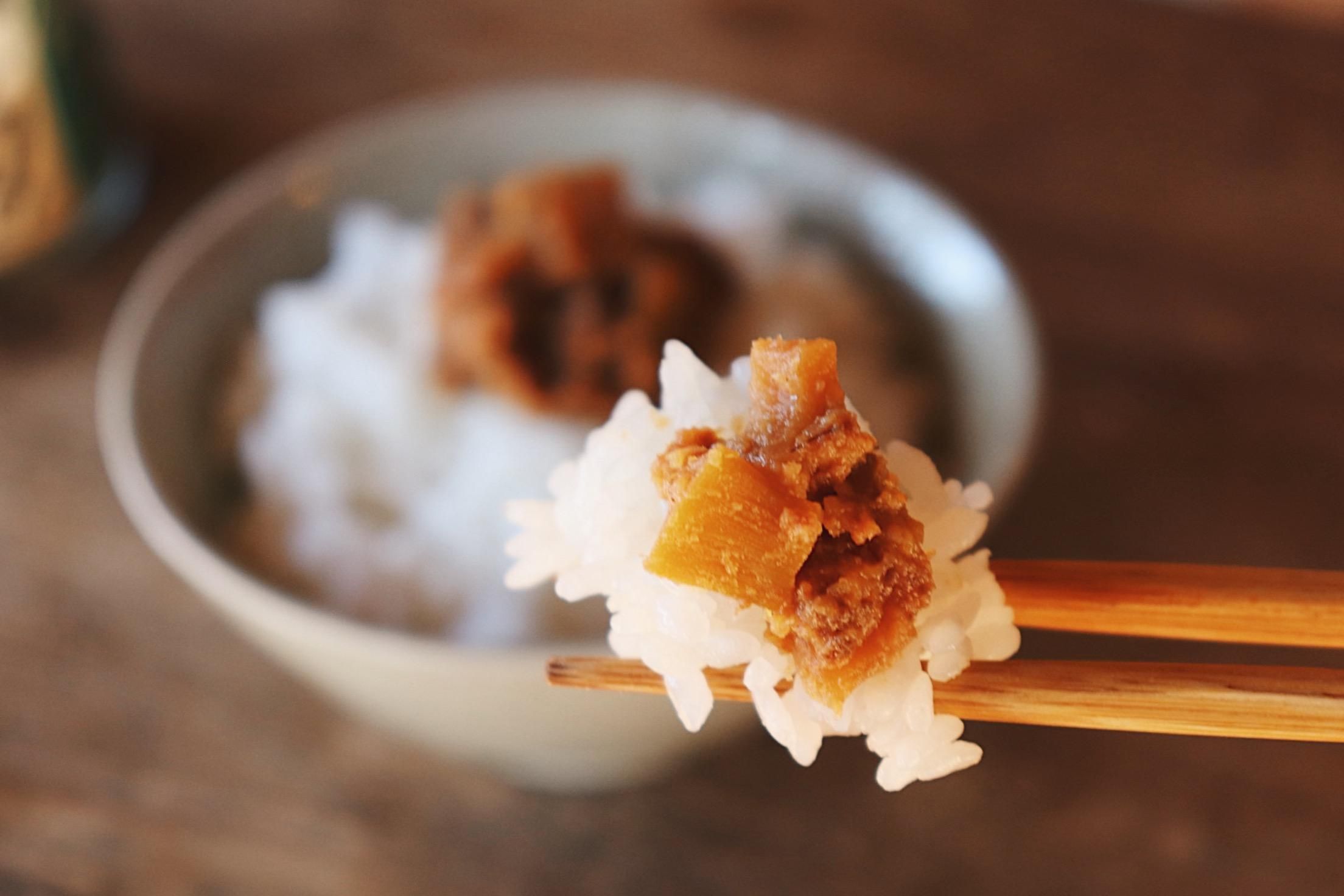 そんな大名筍をぜいたくに使い、甘辛い味噌と合わせたのが、「大名筍の豚みそ」実際に食べてみると、まず感じるのは甘くてやさしい味わい。筍の味は控えめながらも、シャキッとした歯ごたえがアクセントになり、味噌のコクと豚肉の旨みを引き立ててくれます。私も試食のとき、思わず「ごはんおかわりしたい!」と言ってしまったほど。あつあつのご飯にのせれば箸が止まらず、おにぎりの具や焼酎のおともにもぴったりです。